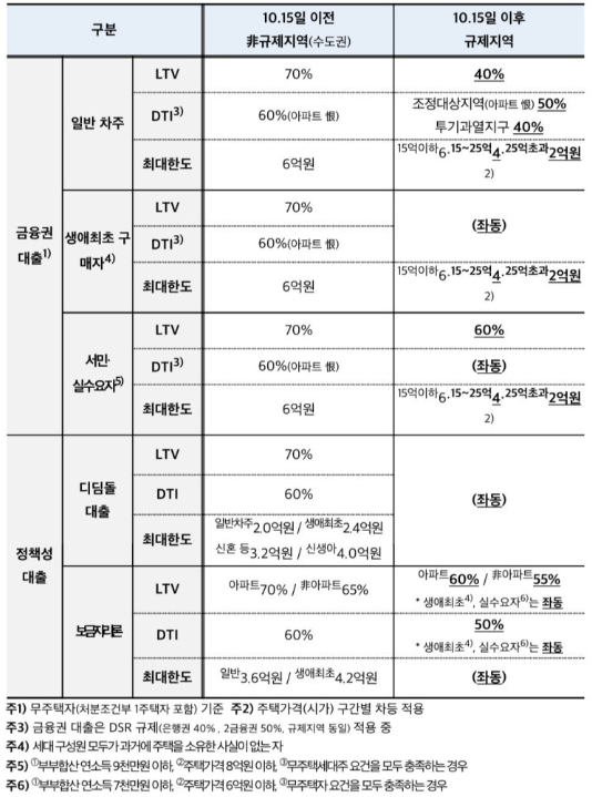 10.15 부동산 규제 주요 내용(+서민 실수요자 대출규제 완화)